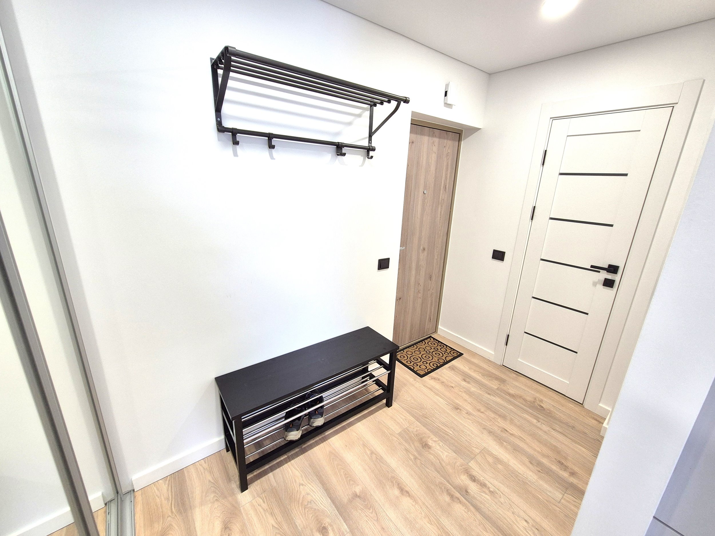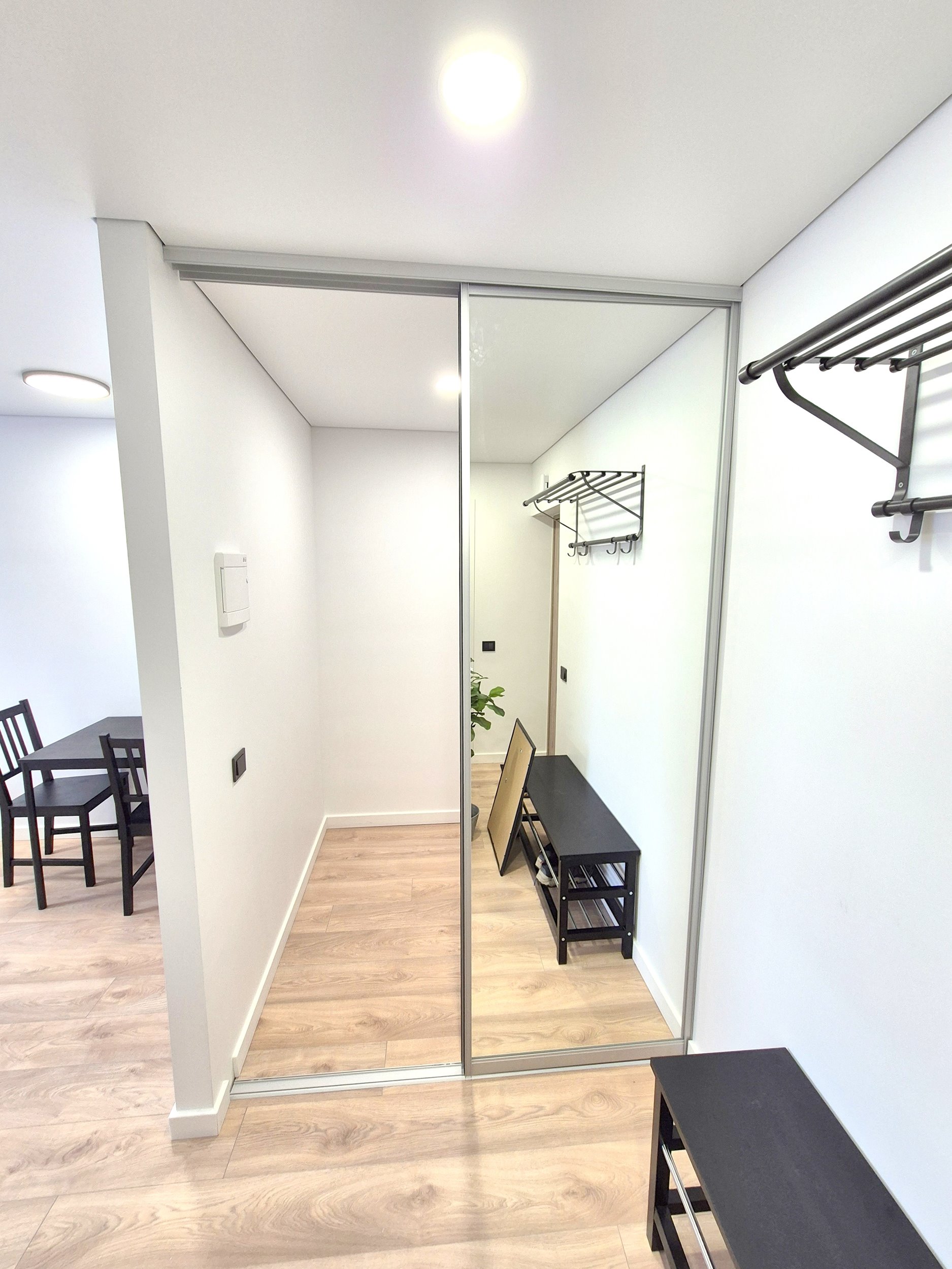 NAUJAS VIRTUVĖS KOMPLEKTAS!!! DIDELĖ IR TALPI DRABUŽINĖ SU STUMDOMOMIS VEIDRODINĖMIS DURIMIS.