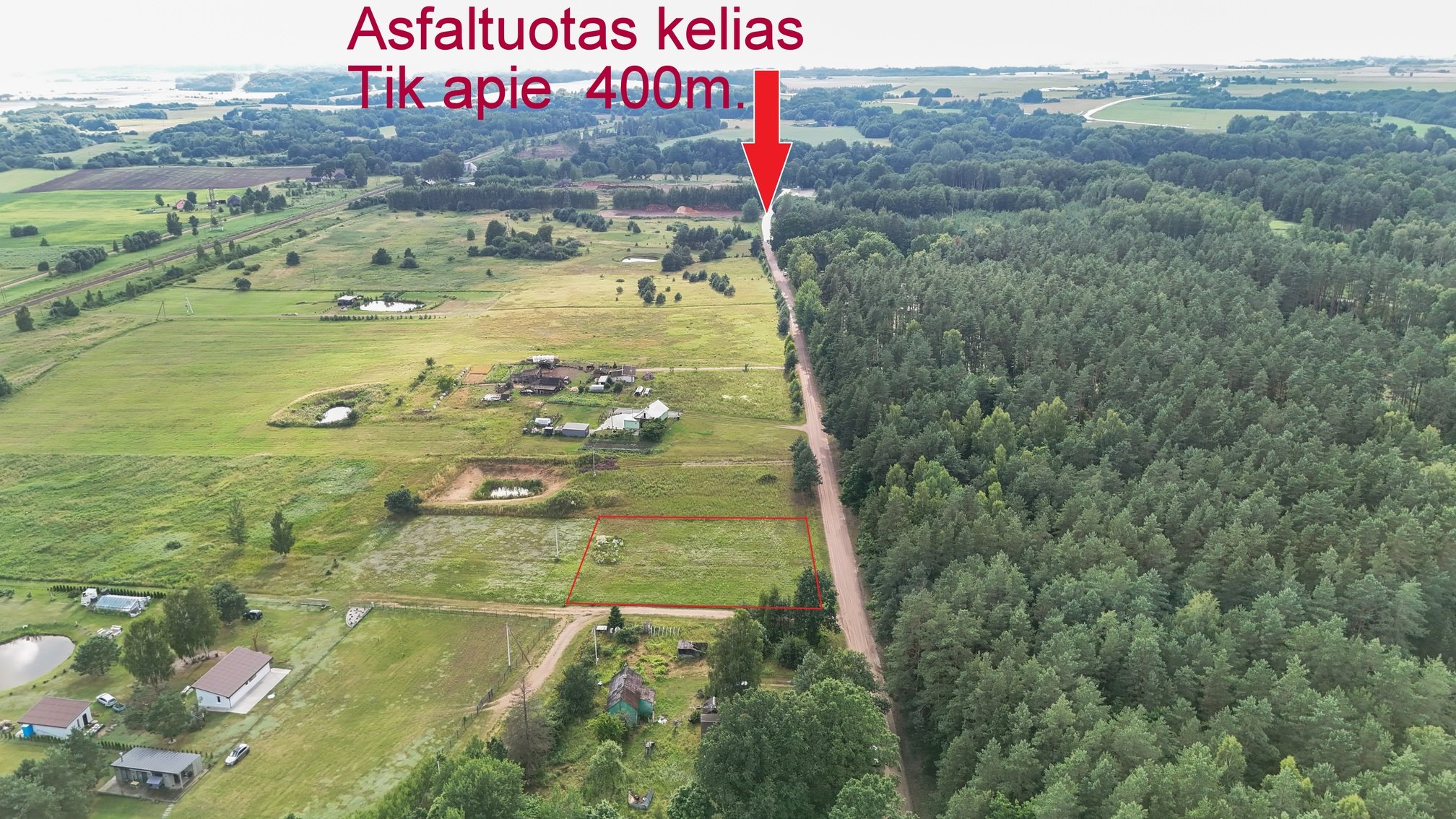 ✔️ Patogus privažiavimas – šalia sklypo žvyrkelis, iki asfaltuoto kelio ~ 400 metrų;