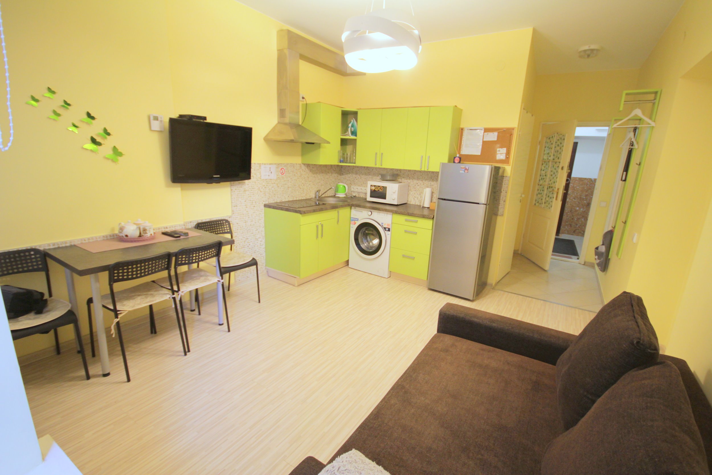 Pilnai įrengta virtuvė su visa įranga vonioje plytelės. Pirmo aukšto butas grindys - laminatas, sienos dažytos, šildymas radiatoriai, vonia plytelės (šildomos grindys elektra).