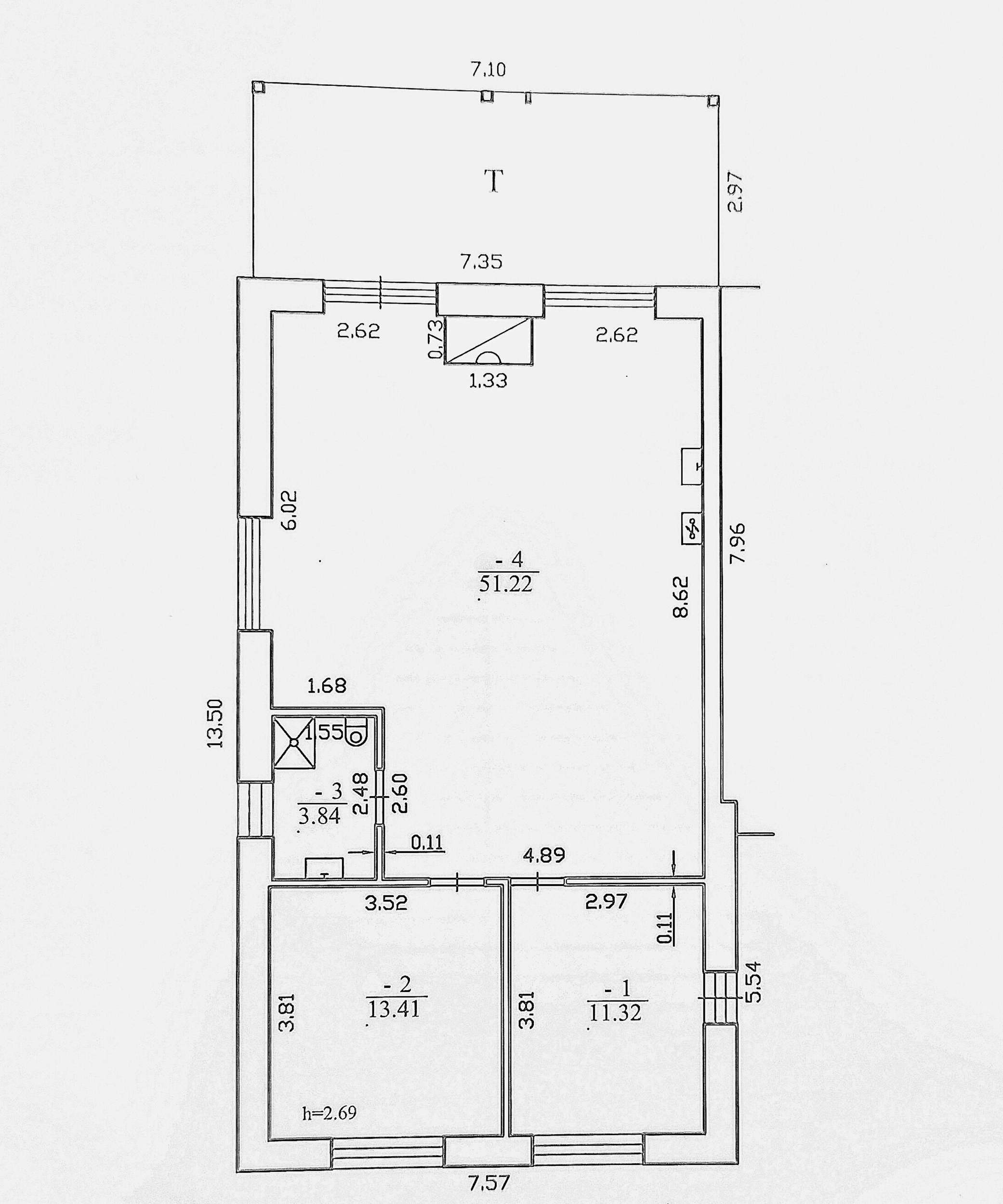 - Bendras plotas: 130 kv. m., Namo plotas 80 kv. m. ir ūkinio pastato plotas 51
