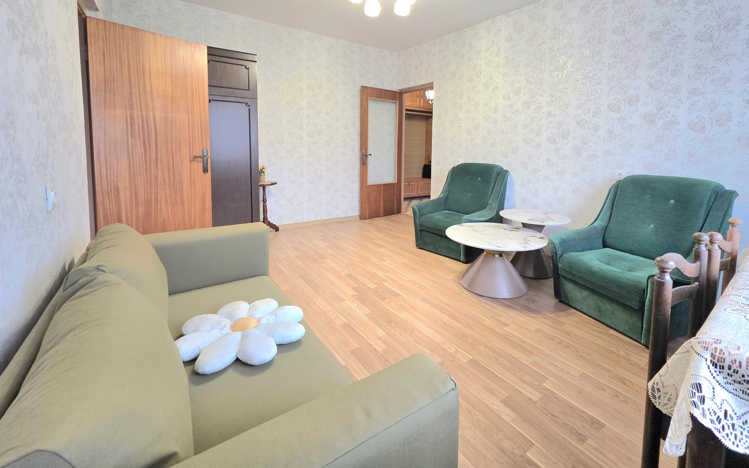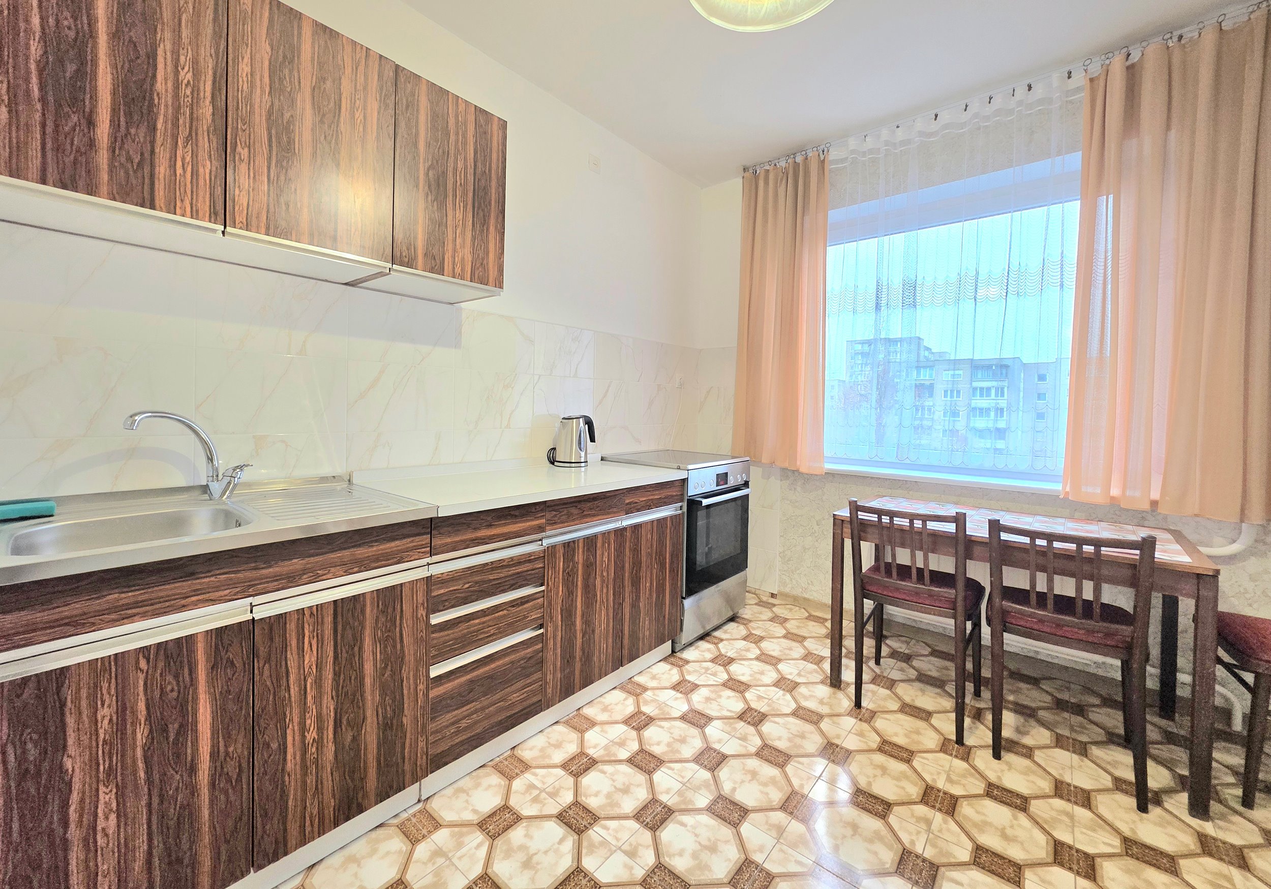 Erdvus, tvarkingas, šiltas butas, su baldais bei buitine technika.