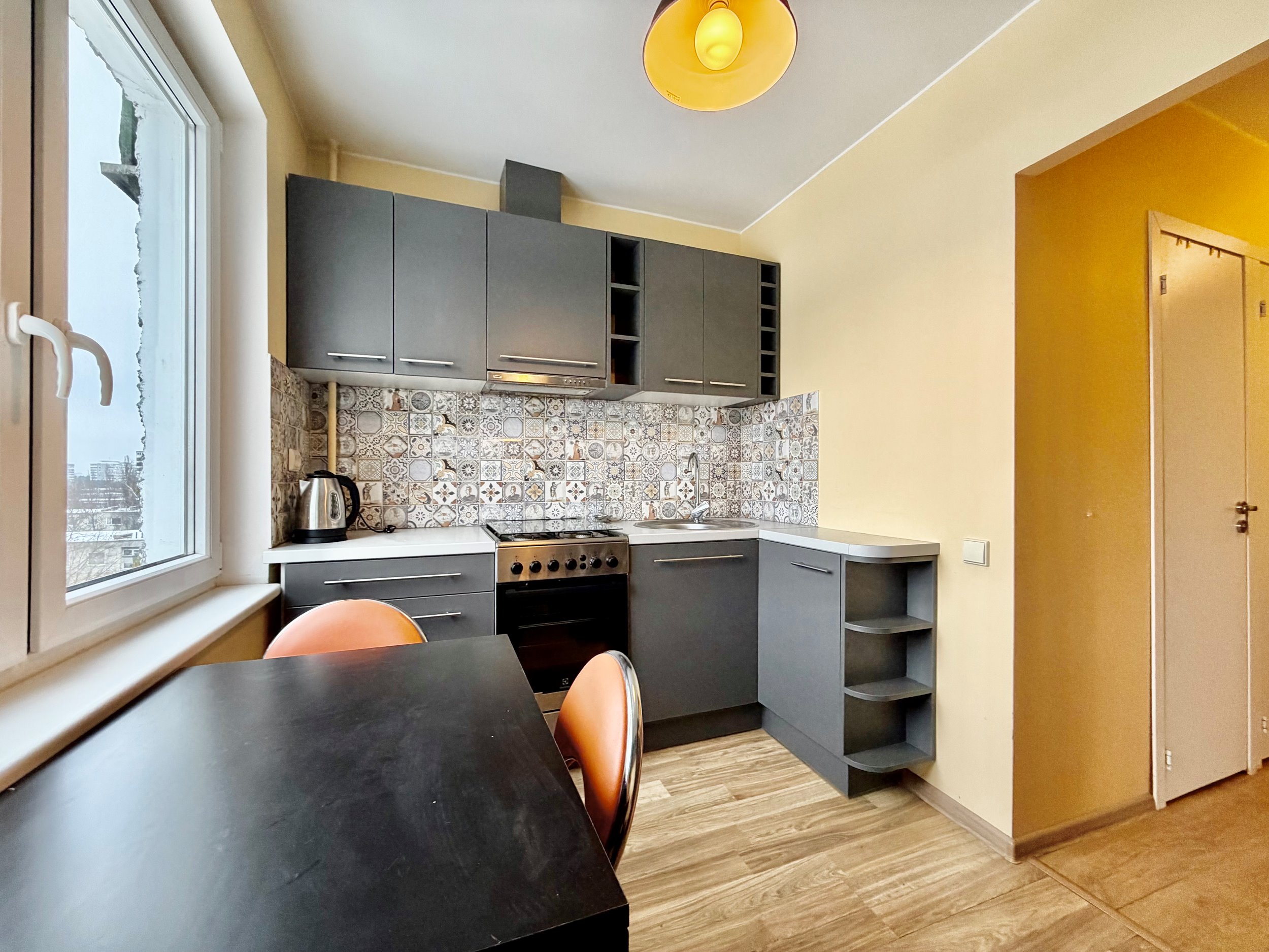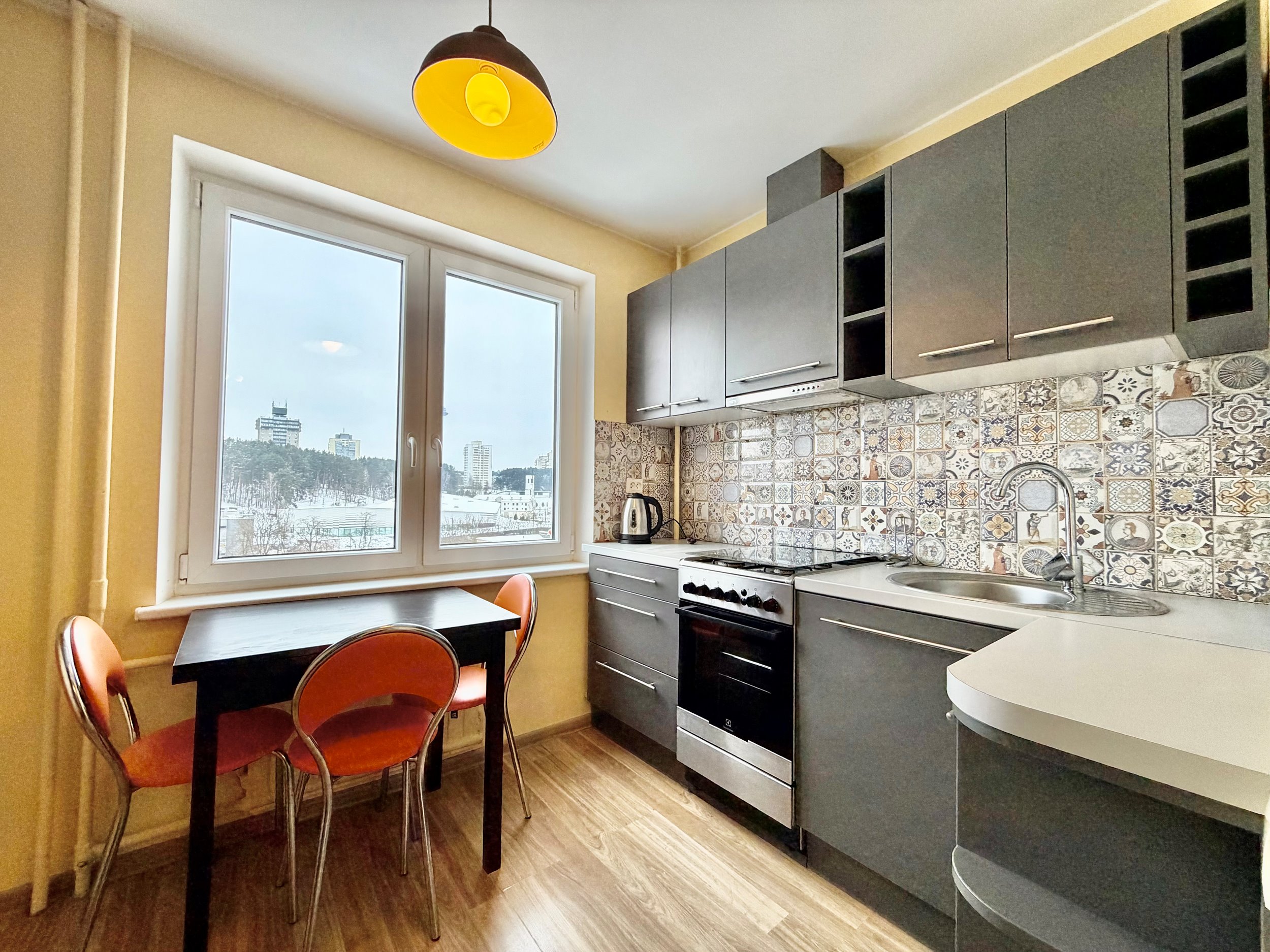 Išplanavimas: svetainė, miegamasis, virtuvė atskirai, tualetas ir vonia atskirai, tamsusis kambariukas.