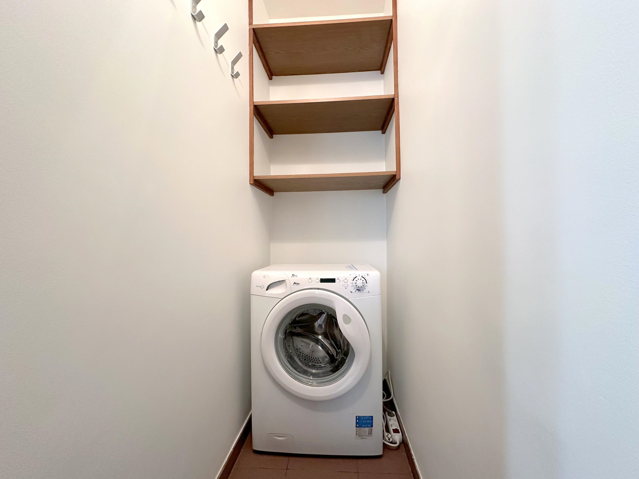 Bute yra visi reikalingiausi baldai, skalbimo mašina, šaldytuvas, viryklė ir t.t.