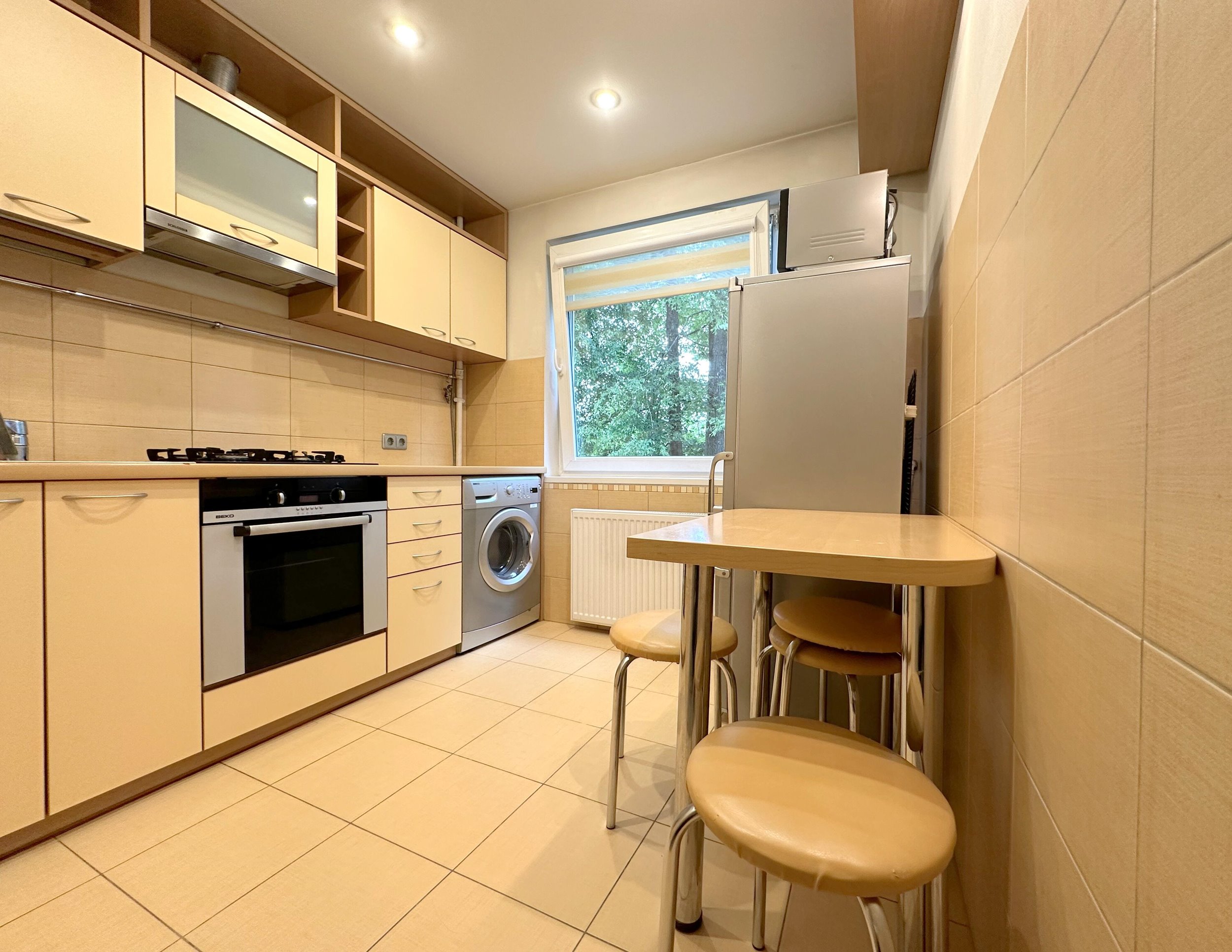 Bute yra visi reikalingiausi baldai, skalbimo mašina, šaldytuvas, viryklė ir t.t.