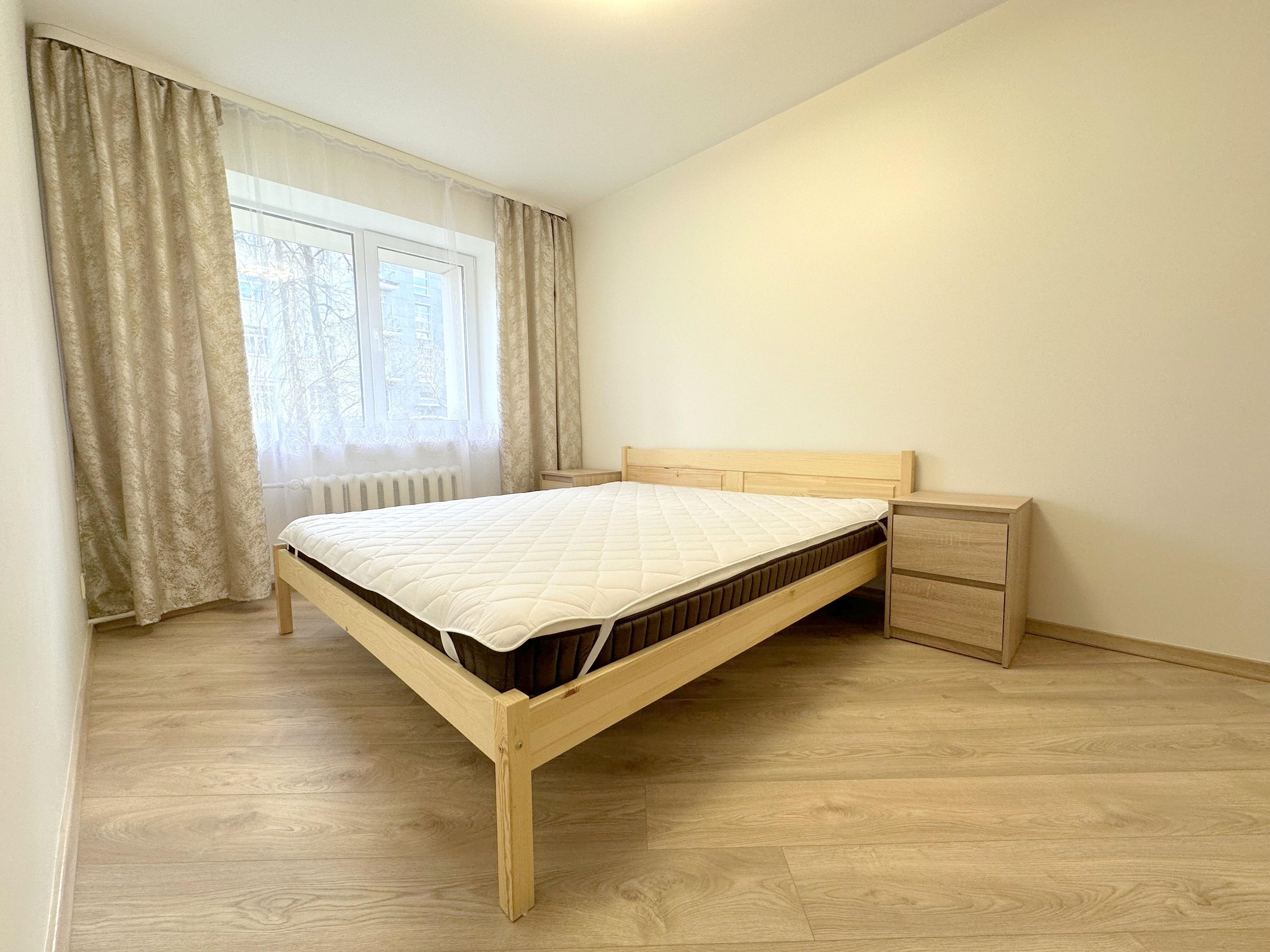 Geroje, ramioje vietoje, išnuomojamas naujai įrengtas 45 kv.m. ploto, dviejų kambarių jaukus, šiltas butas.
