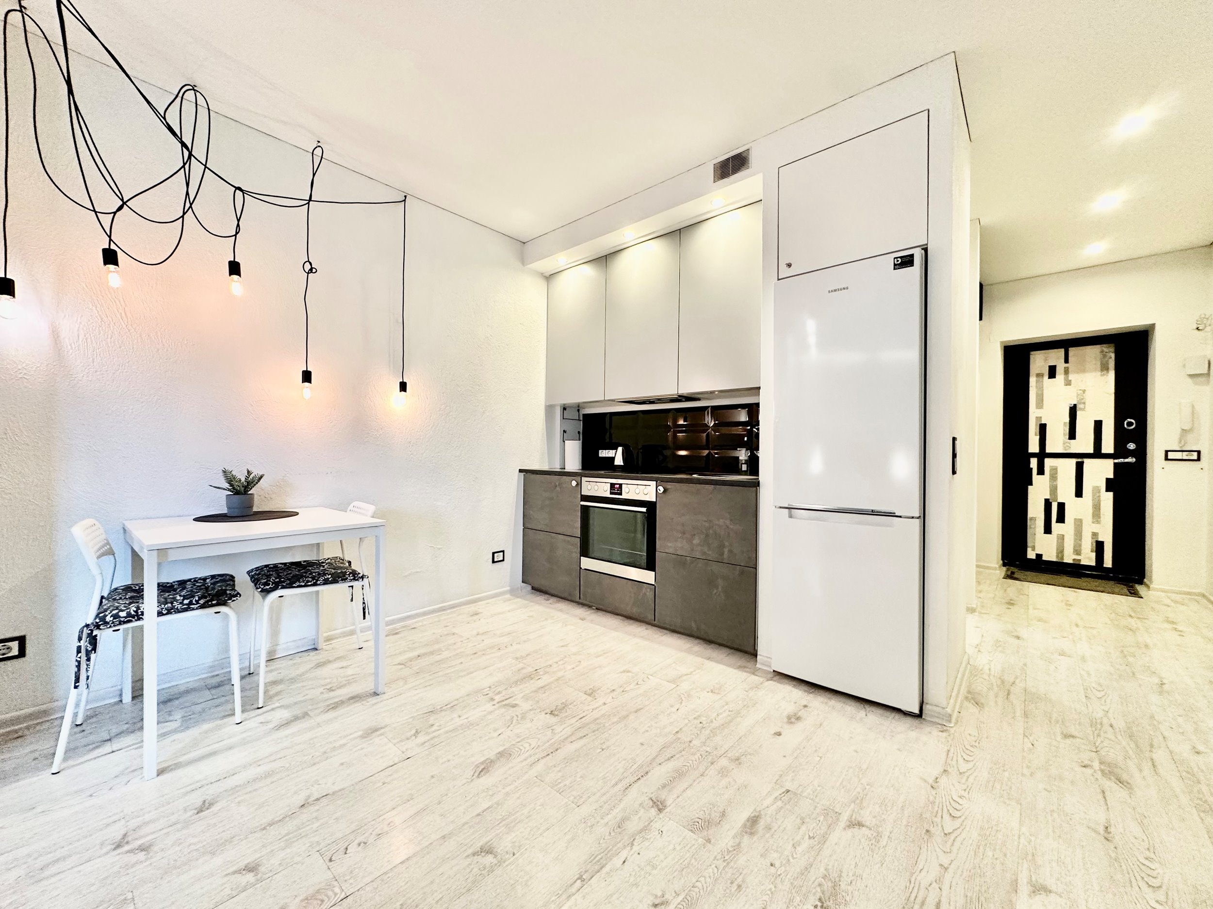 Bute yra visi reikalingiausi baldai: televizorius, skalbimo mašina, šaldytuvas su šaldikliu, kaitlentė ir t.t.