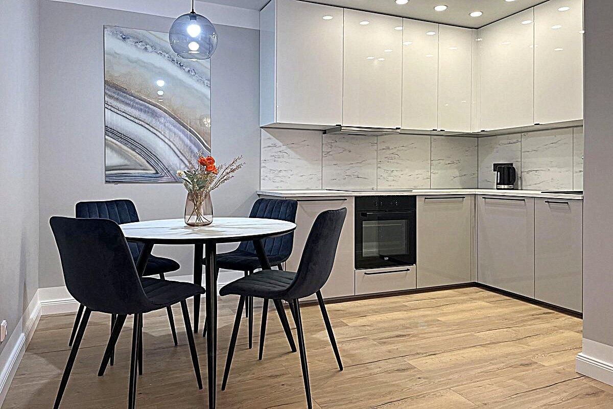 - Yra visa reikalinga buitinė technika (viryklė, šaldytuvas, gartraukis, skalbimo