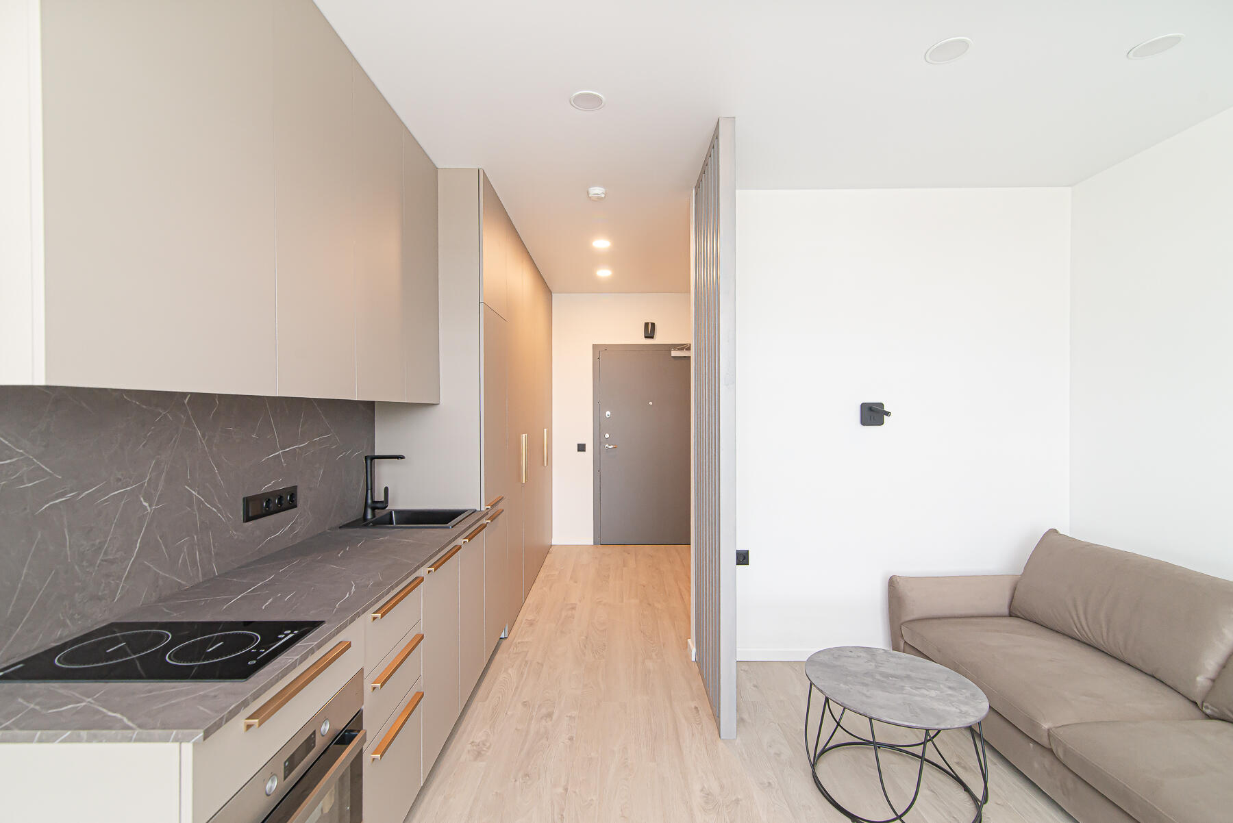 DĖMESIO NUO LIEPOS 1D. NUOMOJAMAS ŠIUOLAIKIŠKAI ĮRENGTAS, VIENO KAMBARIO BUTAS - STUDIJA